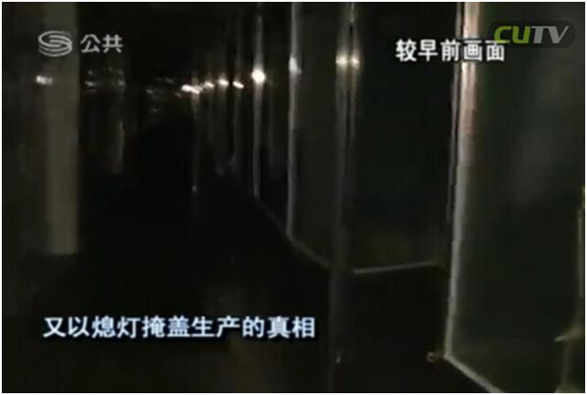 在突擊檢查中,首先遭到了保安的阻擾拖延,進入到廠房后,工人們又以熄燈掩蓋生產(chǎn)的真相。