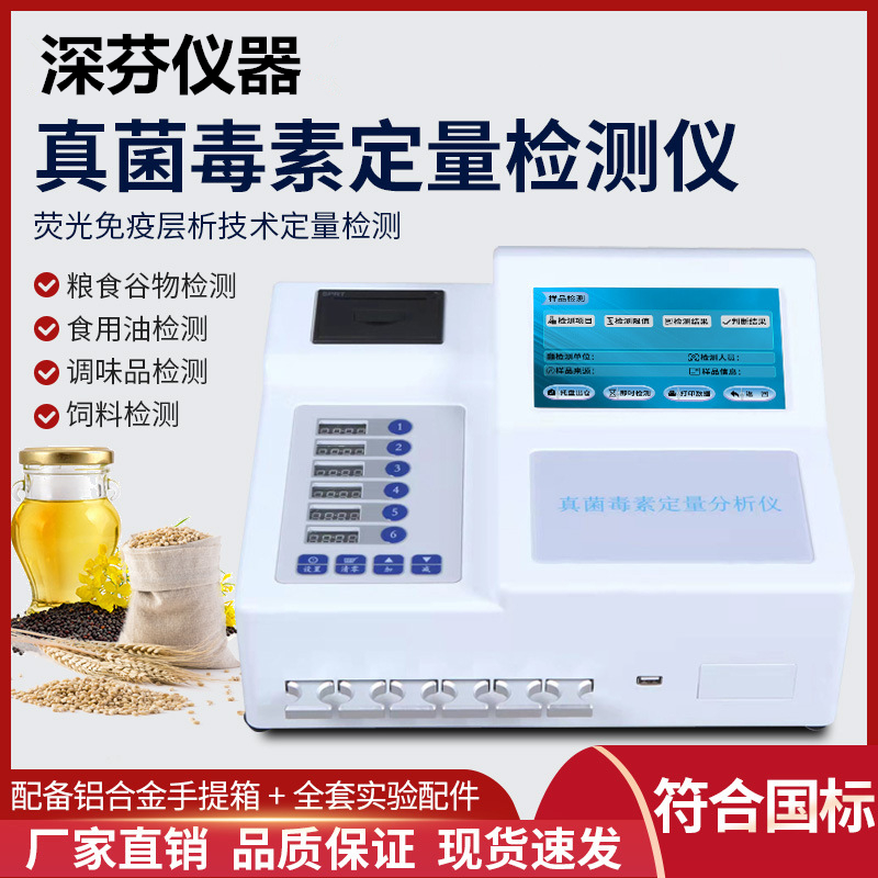 深芬儀器CSY-YG701真菌毒素快速檢測(cè)儀能夠快速定量檢測(cè)糧食、飼料、谷物、食用油、調(diào)味品等食品中T2毒素、嘔吐毒素、赭曲霉毒素、伏馬毒素、玉米赤霉烯酮,適用于糧油監(jiān)測(cè)中心、糧油飼料生產(chǎn)加工、食品加工貿(mào)易、畜禽養(yǎng)殖戶自查、質(zhì)監(jiān)部門用于市場(chǎng)快速篩查等,能夠快速準(zhǔn)確定量檢測(cè)出食品中的真菌毒素含量,杜絕真菌毒素超標(biāo)食物流入市場(chǎng)。