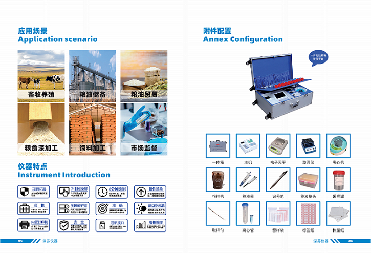 深圳市芬析儀器制造有限公司(深芬儀器)研發(fā)生產(chǎn)的CSY-YG701嘔吐毒素快速測(cè)定儀應(yīng)用競(jìng)爭(zhēng)抑制免疫層析的原理,通過(guò)檢測(cè)線熒光定量卡中的熒光強(qiáng)弱程度,定量分析待檢樣品中嘔吐毒素殘留含量,能夠快速檢測(cè)玉米、小麥、大米、大麥、小米和燕麥等谷物、飼料、面粉、食用油、調(diào)味品等食品中嘔吐毒素含量,適用于糧油監(jiān)測(cè)中心、糧油飼料生產(chǎn)加工、食品加工貿(mào)易、畜禽養(yǎng)殖戶自查、質(zhì)監(jiān)部門(mén)用于市場(chǎng)快速篩查等。